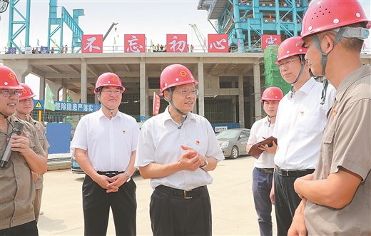 7月1日,自治區(qū)主席陳武深入防城港市,就金屬材料工業(yè)高質(zhì)量發(fā)展情況進(jìn)行調(diào)研。這是在柳鋼防城港鋼鐵基地項(xiàng)目施工現(xiàn)場,陳武仔細(xì)詢問項(xiàng)目建設(shè)進(jìn)度和配套碼頭建設(shè)情況。 記者 黃 克/攝