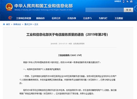 人民網(wǎng)北京7月3日電 (易瀟)日前,工業(yè)和信息化部(以下簡稱:工信部)發(fā)布了2019年第一季度電信服務(wù)質(zhì)量通告。通告顯示,多款金融APP存在非法收集個(gè)人信息問題,工信部表示已對(duì)違規(guī)軟件進(jìn)行下架處理,并責(zé)令企業(yè)整改。