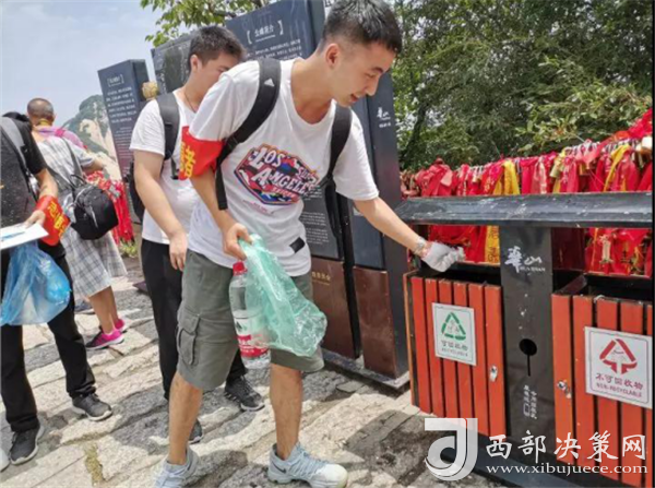 志愿者以實(shí)際行動(dòng)踐行志愿者精神,宣傳環(huán)保理念。7月12日早晨,即使天空下著雨也沒能阻擋志愿者們對(duì)本次公益活動(dòng)熱情,他們同工作人員一同來(lái)到華山景區(qū)開展主題為“相約青春,綠行環(huán)保”的登山撿垃圾環(huán)保公益活動(dòng)。