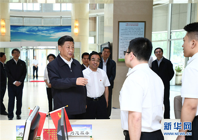 7月15日至16日,中共中央總書記、國家主席、中央軍委主席習(xí)近平在內(nèi)蒙古考察并指導(dǎo)開展“不忘初心、牢記使命”主題教育。這是16日上午,習(xí)近平在內(nèi)蒙古自治區(qū)自然資源廳自然資源政務(wù)大廳同工作人員交談,了解開展主題教育和落實便捷高效政務(wù)服務(wù)等情況。 新華社記者 謝環(huán)馳 攝