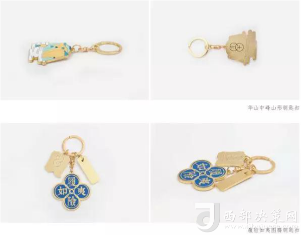 從華山眾多的摩崖題刻中,我們最終遴選出吳松治題的一句“履險(xiǎn)如夷”,搭配“五岳真形圖”代表西岳華山的圖符,做出一款寓意“平順安泰”的精品鑰匙扣。出門在外,一份平安一份福。同時(shí),我們以輕穎的工筆畫風(fēng),提煉出華山五峰組成的整座山型,制作成一款風(fēng)景鑰匙扣,大風(fēng)景,小收藏。