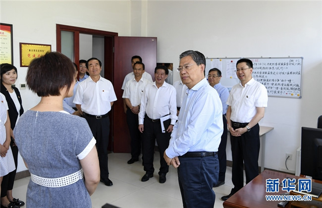 7月22日至24日,中共中央政治局常委、中央紀(jì)委書記趙樂際到寧夏調(diào)研。這是7月22日,趙樂際在石嘴山市紀(jì)委監(jiān)委機(jī)關(guān)實地了解紀(jì)檢監(jiān)察工作和主題教育開展情況。 新華社記者 張領(lǐng) 攝