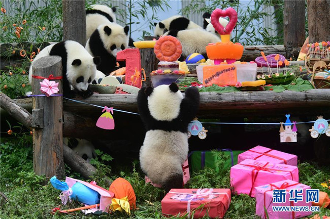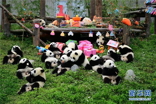 當(dāng)日,在位于四川臥龍的中國(guó)大熊貓保護(hù)研究中心神樹(shù)坪基地的大熊貓幼兒園,2018年出生的18只大熊貓幼仔過(guò)了一場(chǎng)別開(kāi)生面的集體生日。