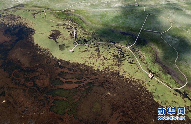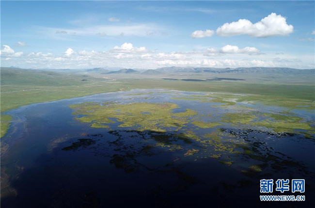 7月29日無人機拍攝的尕海湖湖畔濕地。 新華社記者 馬寧 攝