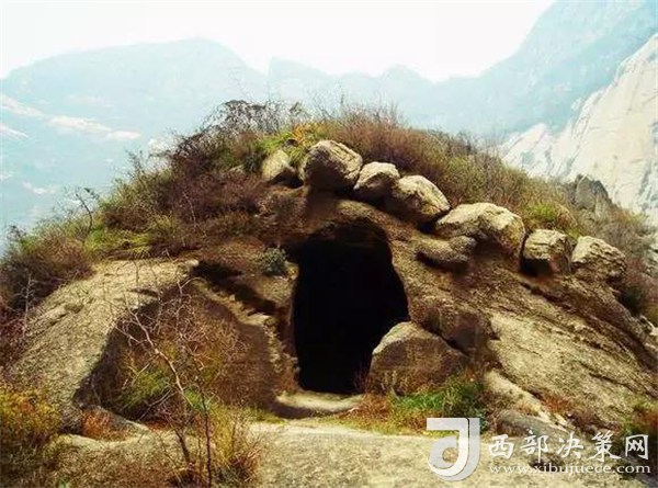 在華山北峰,過千尺幢經(jīng)百尺峽,就到了北峰最著名的老君犁溝。這里最為吸引人的,除卻“犁險于幢,幢險而犁突”的殊勝景觀,除卻老君犁溝盡頭陡峭到連山猴都難以逾越的“猢猻愁”,光是崖壁下一口幽深的石洞,就足以讓四海游人紛至沓來。足蹬石窩手攬鐵索攀上石頂,再走過一個獨木橋就到了山洞口。