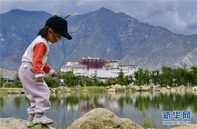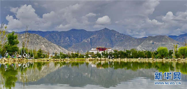 在南山公園湖畔拍攝的布達拉宮風光(7月30日攝)。新華社記者 張汝鋒 攝