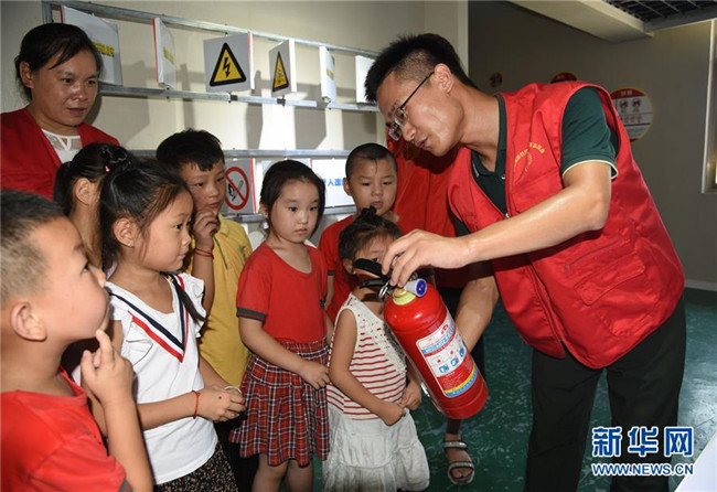 當日,山東省汶上縣劉樓鎮(zhèn)舉行兒童安全教育活動,組織小朋友到安全教育體驗基地學(xué)習(xí),加強安全意識,平安度過暑假。 新華社記者 任鵬飛 攝