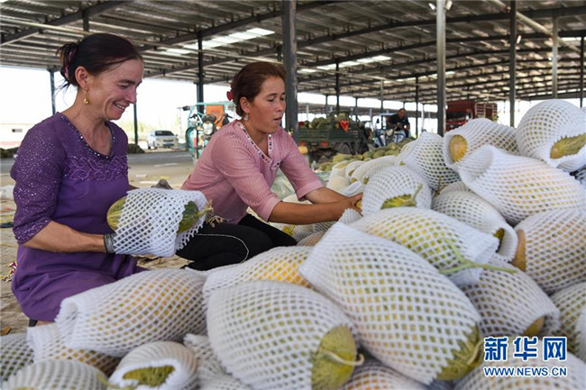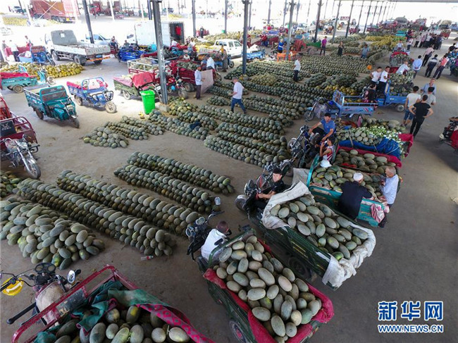 夏秋之交,正是新疆瓜果飄香的時(shí)節(jié)。近日,喀什地區(qū)伽師縣20余萬畝伽師瓜大量上市。在瓜田里,瓜農(nóng)們忙著采摘伽師瓜;在批發(fā)交易市場(chǎng),到處可見包裝、搬運(yùn)伽師瓜的瓜農(nóng)和客商,一派繁忙的景象。