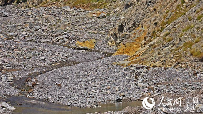 巖羊成群結(jié)隊(duì)到山溝喝水。吳隆重?cái)z