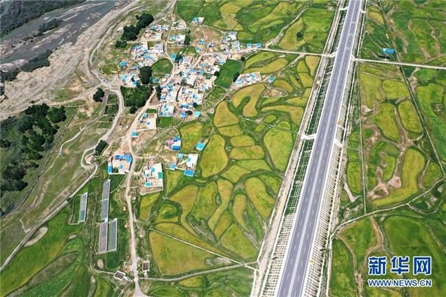初秋,西藏拉(薩)林(芝)公路沿線的河流、村落、農田等構成一幅幅美麗畫卷。 新華社記者 普布扎西 攝