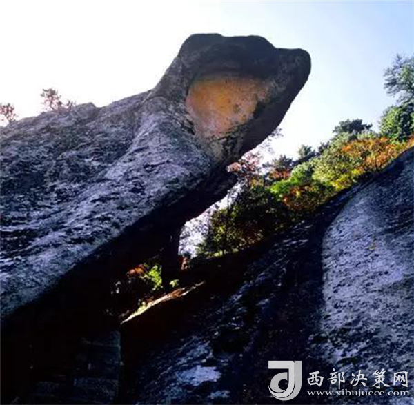 峰南側(cè)是千丈絕壁,直立如削,下臨一斷層深壑,同三公山、三鳳山隔絕。南峰由一峰二頂組成,東側(cè)一頂叫松檜峰,西側(cè)一頂叫落雁峰,也有說南峰由三頂組成,把落雁峰之西的孝子峰也算在其內(nèi)。這樣一來,落雁峰最高居中,松檜峰居東,孝子峰居西,整體形象一把圈椅,三個峰頂恰似一尊面北而坐的巨人。