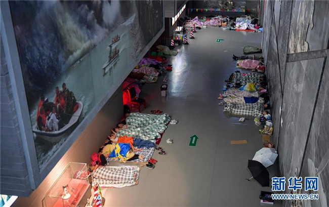 8月21日,汶川縣映秀鎮(zhèn)部分受暴雨災(zāi)害影響的群眾被安置在汶川特大地震震中紀(jì)念館。新華社記者 張超群 攝
