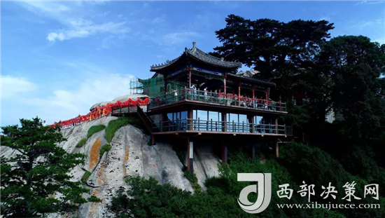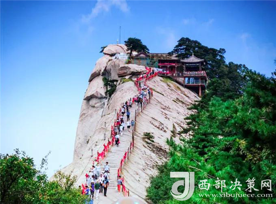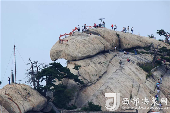 西北絕崖千丈,似刀削鋸截,其陡峭巍峨、陽剛挺拔之勢是華山山形之代表,西峰為一塊完整巨石,渾然天成,海拔2082米,是華山最秀麗險峻的山峰,又因峰巔有巨石形狀好似蓮花瓣,古代文人多稱其為蓮花峰、芙蓉峰。