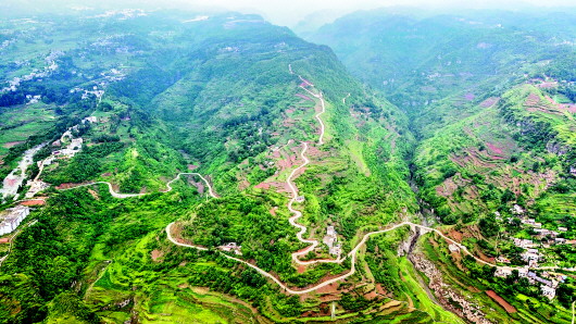 航拍大方縣對江鎮(zhèn)營興村通組公路?!≈苡?xùn)貴 攝