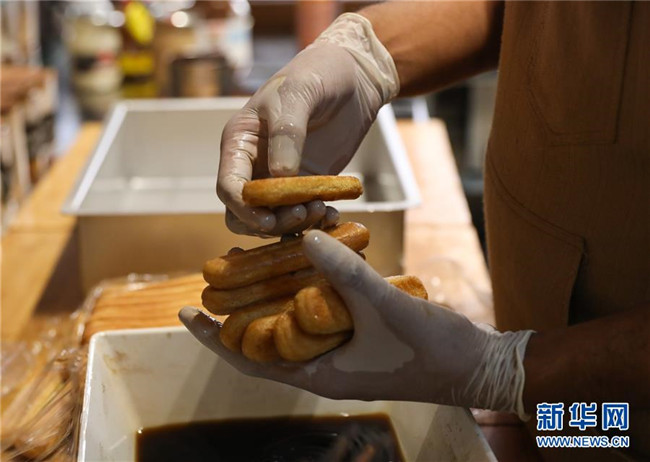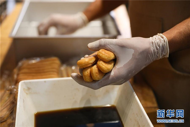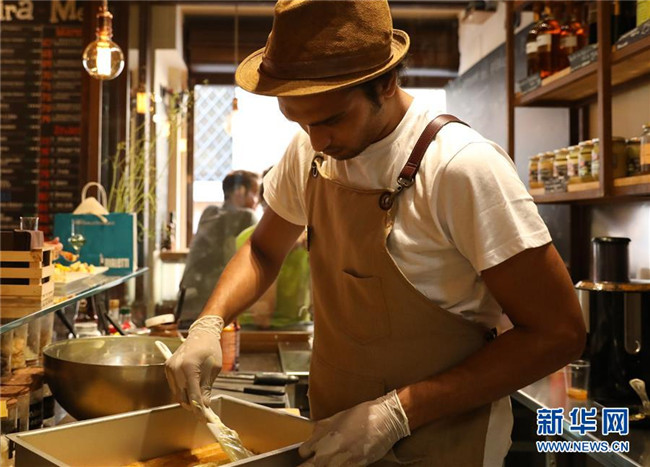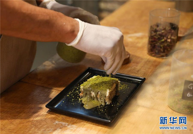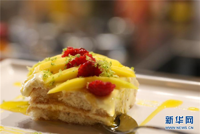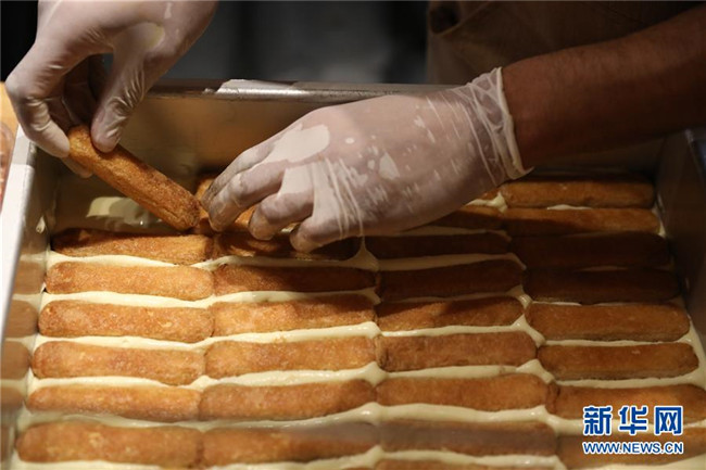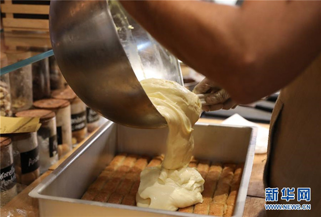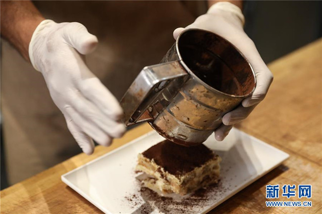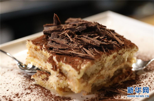 提拉米蘇是意大利傳統(tǒng)甜品,且深受世界各地人民的喜愛。經(jīng)典的意式提拉米蘇由馬斯卡彭奶酪、手指餅干、蛋黃、咖啡、可可粉等原料制成。浸泡過咖啡的手指餅與奶酪糊相互疊加,最上層撒上咖啡粉,再灑上一些碎巧克力;挖一勺送入口中,奶酪的豐盈細(xì)滑與濕潤的手指餅干的顆粒感混合在一起,甜的滋味剛一涌出便由咖啡的苦來平衡,即使正餐吃了再多的意大利面也無法拒絕這樣一道美味的甜品。除了經(jīng)典口味,開心果口味,各式水果口味的提拉米蘇也受到越來越多的歡迎。 新華社記者 程婷婷 攝