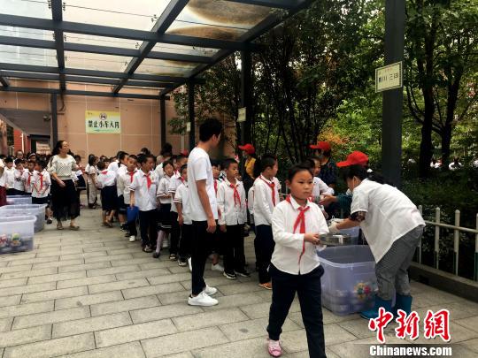 學(xué)校為學(xué)生準(zhǔn)備了營養(yǎng)餐,學(xué)生排隊(duì)領(lǐng)?!垙?qiáng) 攝