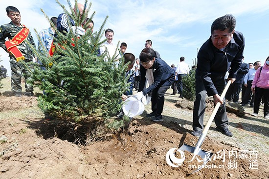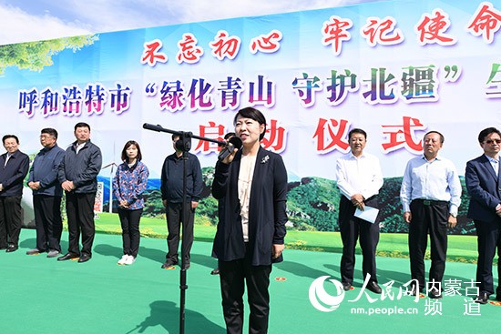 內(nèi)蒙古自治區(qū)黨委常委、呼和浩特市委書記王莉霞宣布生態(tài)建設(shè)行動(dòng)啟動(dòng)。