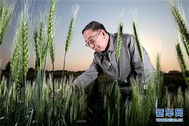 李振聲院士在中國科學院遺傳與發(fā)育生物學研究所農(nóng)業(yè)資源研究中心南皮生態(tài)農(nóng)業(yè)試驗站(中科院南皮站)的試驗田里(2014年5月5日攝)。新華社記者 金立旺 攝