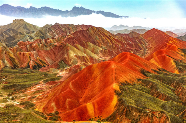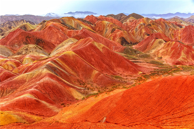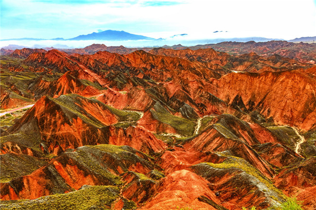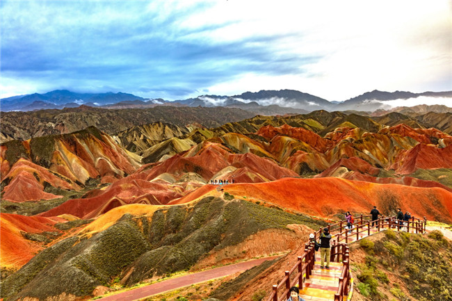9月9日,甘肅張掖七彩丹霞旅游景區(qū)。一場小雨剛剛飄過,整個(gè)景區(qū)如同燃燒了萬年的火焰,更加艷麗、熱烈而磅礴。位于祁連山北麓臨澤、肅南縣境內(nèi),距張掖市區(qū)30公里、臨澤城區(qū)20公里,分布面積約50平方公里的七彩丹霞景區(qū),是中國北方干旱地區(qū)發(fā)育最典型的丹霞地貌及國內(nèi)唯一的丹霞地貌與彩色丘陵景觀復(fù)合區(qū)。先后被評為“中國最美的七大丹霞”“中國最美的六處奇異地貌”“世界十大神奇地理奇觀”和全球最刻骨銘心的22處風(fēng)景之一,現(xiàn)為國家地質(zhì)公園、國家4A級旅游景區(qū)和省級風(fēng)景名勝區(qū)。