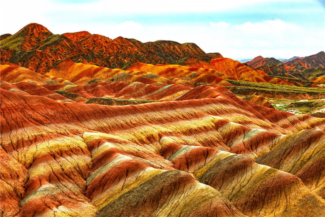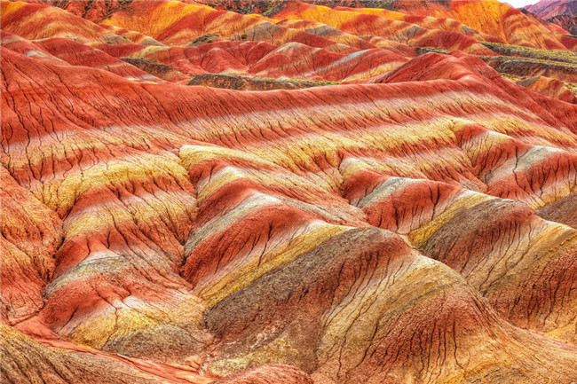 景區(qū)以地貌色彩艷麗、層理交錯(cuò)、氣勢磅礴、場面壯觀而稱奇,彩色丘陵的觀賞性之強(qiáng)、面積之大冠絕全國,舉世罕見,具有很高的科考和旅游觀賞價(jià)值。人民日報(bào)記者史家民攝影報(bào)道
