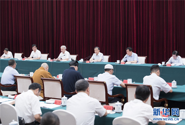 9月9日至10日,中共中央政治局常委、全國政協(xié)主席汪洋在江西調(diào)研宗教工作。這是9月10日,汪洋在南昌主持召開宗教工作座談會(huì)并講話。新華社記者 王曄 攝