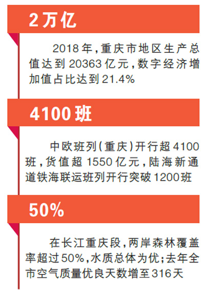 “新中國成立70年來,重慶人民走過了一段波瀾壯闊的光輝歷程,巴渝大地發(fā)生了翻天覆地的變化。”唐良智說,1997年,重慶成為直轄市后,在黨中央堅強(qiáng)領(lǐng)導(dǎo)下,圓滿完成三峽百萬移民搬遷安置任務(wù),為決勝全面建成小康社會打下了堅實的基礎(chǔ)。2018年,全市地區(qū)生產(chǎn)總值達(dá)到20363億元,是1949年的1466倍;人均地區(qū)生產(chǎn)總值達(dá)到9964美元,是1949年的758倍。
