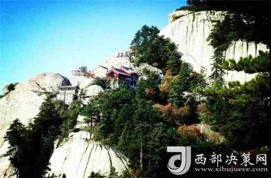 又因峰巔有巨石形狀好似蓮花瓣,古代文人多稱其為蓮花峰、芙蓉峰。西峰為一塊完整巨石,渾然天成。西北絕崖千丈,似刀削鋸截,其陡峭巍峨、陽剛挺拔之勢是華山山形之代表,因此古人常把華山叫蓮花山。西峰南崖有山脊與南峰相連,脊長300余米,石色蒼黛,形態(tài)好像一條屈縮的巨龍,人稱為屈嶺,也稱小蒼龍嶺,是華山著名的險道之一。