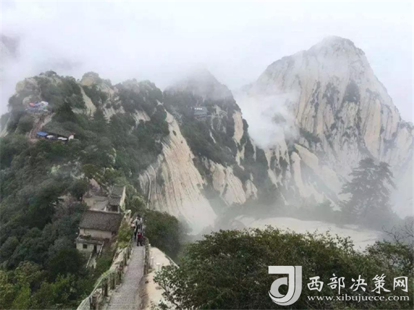 眾所周知,華山在五岳之中以“險峻”著稱。素有“奇險天下第一山”之譽,華山的主體是由一塊完整碩大的花崗巖體構(gòu)成的,挺拔地屹立在渭河平原。東、南、西三峰拔地而起,如利刃削就。由于華山太險,所以唐代以前很少有人登臨,歷代君王祭祀西岳,也只是在山下西岳廟中舉行大典。據(jù)記載,直到魏晉南北朝時期,還沒有通向華山峰頂?shù)牡缆?。唐代才逐漸在北坡沿溪谷而上開鑿了一條險道,也從此有了“自古華山一條路”的說法。