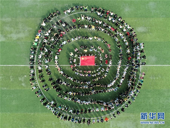 9月18日,邢臺(tái)技師學(xué)院的學(xué)生參加快閃活動(dòng)“我和國旗有個(gè)約會(huì)”。
