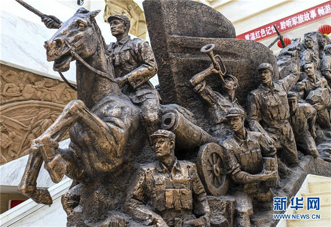 這是在新疆生產建設兵團第六師五家渠市博物館內展出的大型雕塑《軍墾魂》(7月31日攝)。新華社記者 王菲 攝
