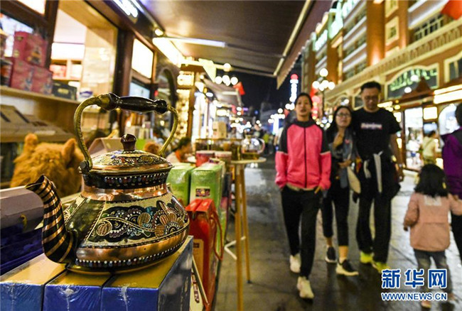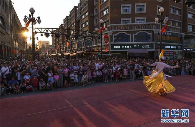 人聲鼎沸的大巴扎景區(qū),歡快的歌舞,豐富的美食,每天吸引著10余萬海內外游客匯聚于此。夜愈深,霓虹愈璀璨,映照著一張張笑臉。