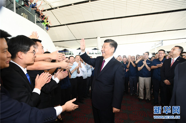 投運(yùn)儀式結(jié)束后,習(xí)近平來(lái)到機(jī)場(chǎng)國(guó)際出發(fā)大廳,看望參與機(jī)場(chǎng)建設(shè)和運(yùn)營(yíng)的工作人員代表。習(xí)近平同大家一一握手,代表黨中央向大家并向所有參與機(jī)場(chǎng)規(guī)劃、建設(shè)、運(yùn)營(yíng)的同志們表示熱烈的祝賀和節(jié)日的問(wèn)候。習(xí)近平指出,大興國(guó)際機(jī)場(chǎng)建設(shè)標(biāo)準(zhǔn)高、建設(shè)工期緊、施工難度大,全體建設(shè)者辛勤勞動(dòng)、共同努力,高質(zhì)量地完成了任務(wù),把大興國(guó)際機(jī)場(chǎng)打造成為精品工程、樣板工程、平安工程、廉潔工程,向黨和人民交上了一份令人滿(mǎn)意的答卷!