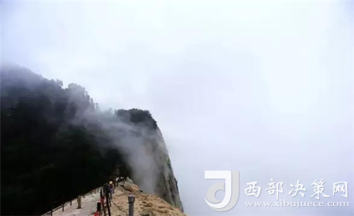 從迷霧中,中北峰下行,云臺峰、金鎖關(guān)、蒼龍嶺沿著“智取華山路”開始下山,迷霧漸去,遠近山峰在白霧中便若隱若現(xiàn)起來,云霧纏繞著,飄動著,可謂仙境,有錯過也有驚喜。