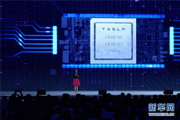 10月20日,特斯拉公司代表在介紹“特斯拉完全自動(dòng)駕駛芯片”。 新華社記者 黃宗治 攝