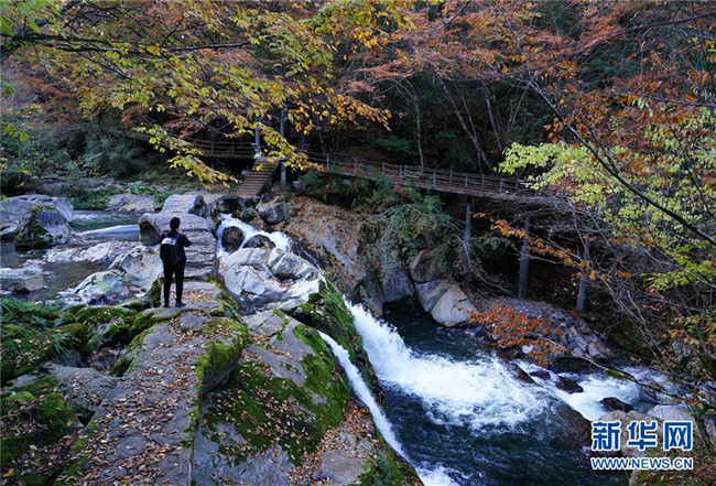 陜西嵐皋縣地處大巴山北麓,境內山水相依,美景薈萃。時下,這里層林盡染,秋光瀲滟,云霧繚繞,宛如仙境。 新華社記者 邵瑞 攝