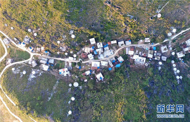 廣西大化瑤族自治縣七百弄鄉(xiāng)弄騰村群眾的家庭水柜分布在房前屋后(11月9日無人機(jī)拍攝)。 新華社記者 黃孝邦 攝