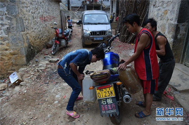 在廣西大化瑤族自治縣板升鄉(xiāng)弄勇村弄朝屯,村民到鄰村運水飲用(2015年2月28日攝)。如今,弄朝屯幾乎家家戶戶都修建了家庭水柜。 新華社記者 黃孝邦 攝