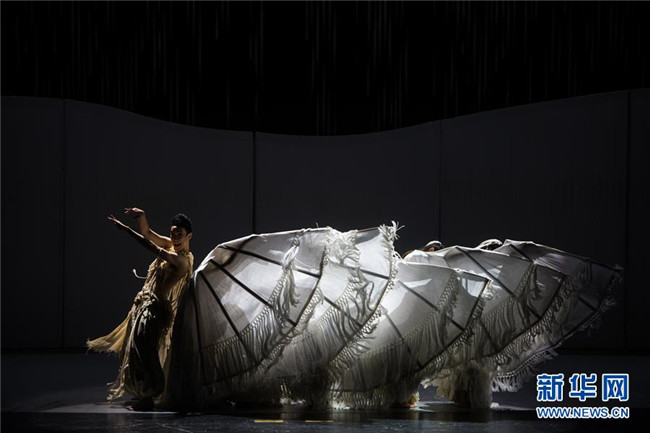 演員在音樂舞劇《云繡彝裳》第二章節(jié)“草木經(jīng)緯”中表演(11月15日攝)。新華社記者胡超攝