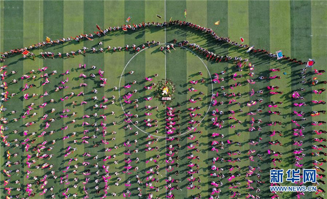 11月23日,當(dāng)?shù)厝罕娫谔J笙斗馬節(jié)開幕式上表演民族歌舞(無人機(jī)拍攝)。