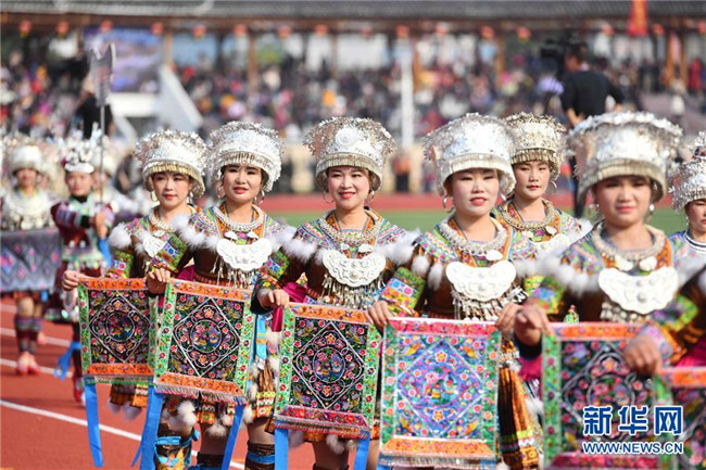 當(dāng)日,廣西融水苗族自治縣第十九屆蘆笙斗馬節(jié)開幕。本屆蘆笙斗馬節(jié)的內(nèi)容包括少數(shù)民族非遺文化展演、蘆笙舞比賽、扶貧產(chǎn)品展、美食節(jié)大賽、水上表演等民族特色活動(dòng)。 新華社記者 黃孝邦 攝