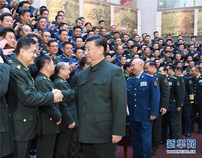 11月27日上午,全軍院校長(zhǎng)集訓(xùn)在國防大學(xué)開班。中共中央總書記、國家主席、中央軍委主席習(xí)近平出席開班式并發(fā)表重要講話,代表黨中央和中央軍委,向全軍院校長(zhǎng)和軍事教育戰(zhàn)線的同志們致以誠摯問候。這是習(xí)近平親切接見集訓(xùn)班全體學(xué)員。 新華社記者 李剛 攝