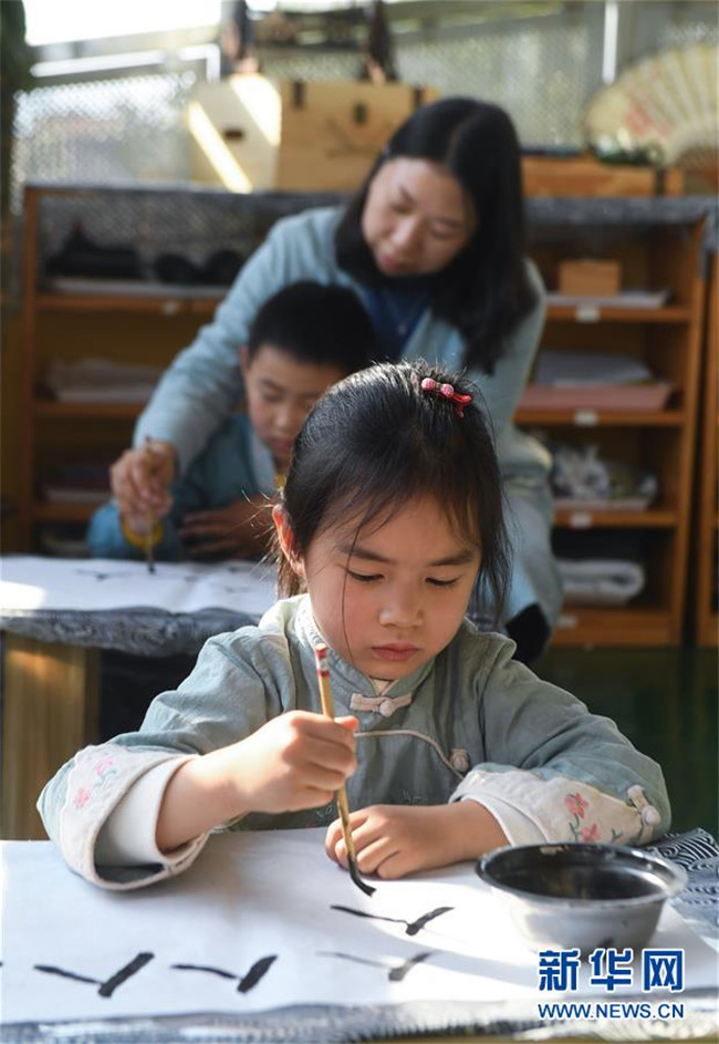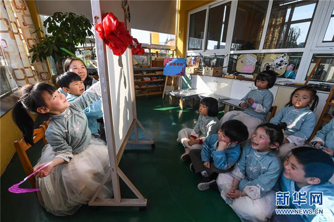 從2019年初開始,浙江省湖州市南太湖幼兒園開啟“國(guó)學(xué)課堂”,通過(guò)設(shè)立傳統(tǒng)禮儀、書法、剪紙、京劇、皮影戲等國(guó)學(xué)傳統(tǒng)文化課程,致力于將國(guó)學(xué)經(jīng)典教育滲透到幼兒日常生活學(xué)習(xí)中,培養(yǎng)幼兒的古典文化底蘊(yùn),教育幼兒從小培養(yǎng)良好的禮儀行為,讓幼兒們?cè)趥鹘y(tǒng)國(guó)學(xué)文化的滋養(yǎng)中成長(zhǎng)。 新華社記者 徐昱 攝