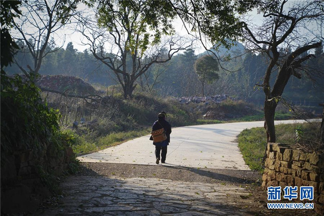 11月28日,一名大糯黑村村民行走在村口。新華社記者毛思倩攝