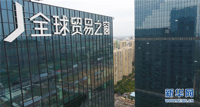 12月5日無人機(jī)拍攝的位于??谑写笥⑸紺BD的??谌蛸Q(mào)易之窗大廈。 新華社記者 楊冠宇 攝