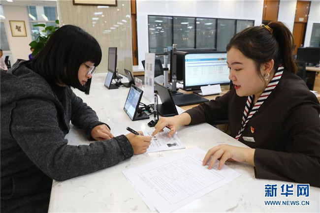11月23日,在遼寧沈撫新區(qū)政務服務中心,工作人員(右)協(xié)助辦事人辦理業(yè)務。新華社記者 龔兵 攝