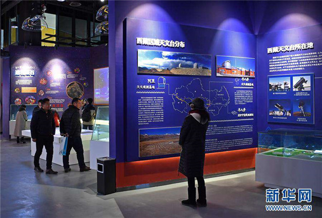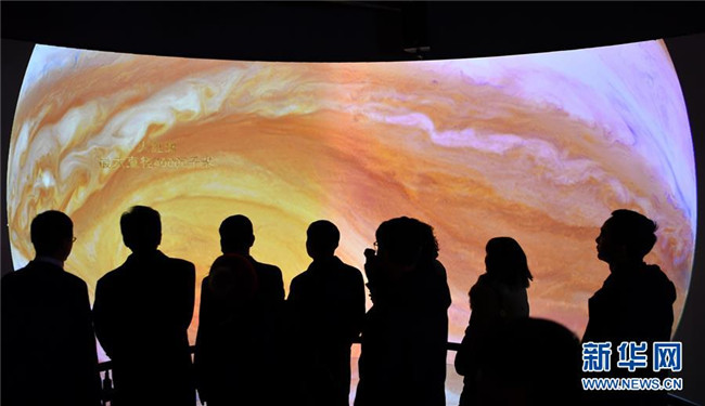 12月14日,觀眾參觀藏域星球天文科普體驗(yàn)館。當(dāng)日,藏域星球天文科普體驗(yàn)館在西藏拉薩開館試運(yùn)營,這是西藏第一家天文科普體驗(yàn)館。據(jù)介紹,此館以感知宇宙、認(rèn)知宇宙、探索宇宙為主題,以參觀者的第一感官體驗(yàn)為設(shè)計(jì)導(dǎo)向,利用互動(dòng)投影、懸浮投影、物體跟蹤、人體捕捉、體感互動(dòng)、VR等高科技手段展示藏地的神秘,揭示宇宙的奧秘。新華社記者李鑫攝
