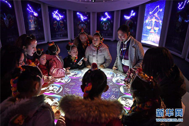 12月14日,拉薩市實(shí)驗(yàn)小學(xué)學(xué)生在藏域星球天文科普體驗(yàn)館學(xué)習(xí)星座知識。當(dāng)日,藏域星球天文科普體驗(yàn)館在西藏拉薩開館試運(yùn)營,這是西藏第一家天文科普體驗(yàn)館。據(jù)介紹,此館以感知宇宙、認(rèn)知宇宙、探索宇宙為主題,以參觀者的第一感官體驗(yàn)為設(shè)計(jì)導(dǎo)向,利用互動(dòng)投影、懸浮投影、物體跟蹤、人體捕捉、體感互動(dòng)、VR等高科技手段展示藏地的神秘,揭示宇宙的奧秘。新華社記者李鑫攝