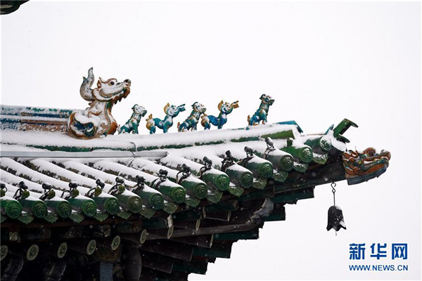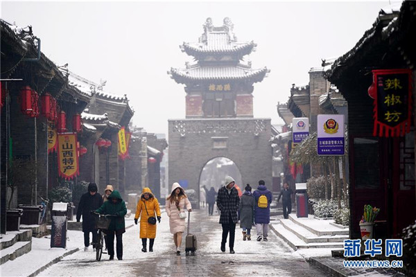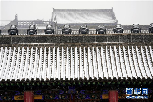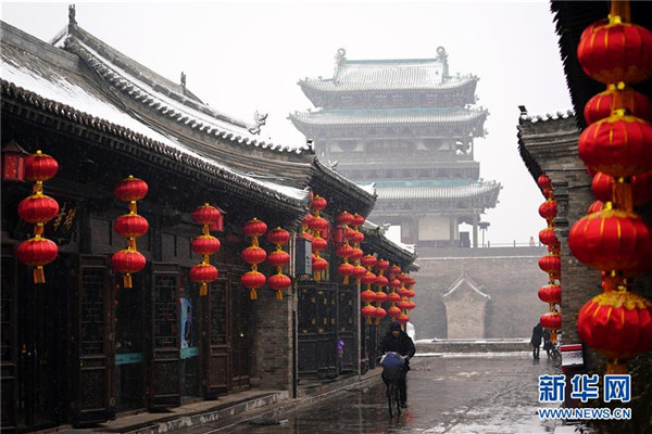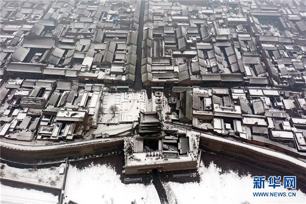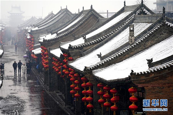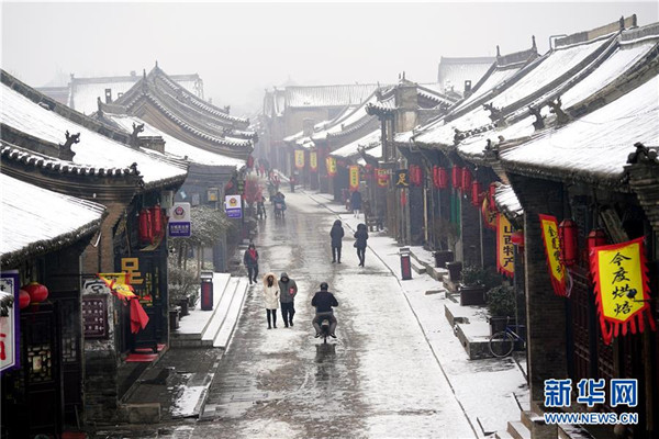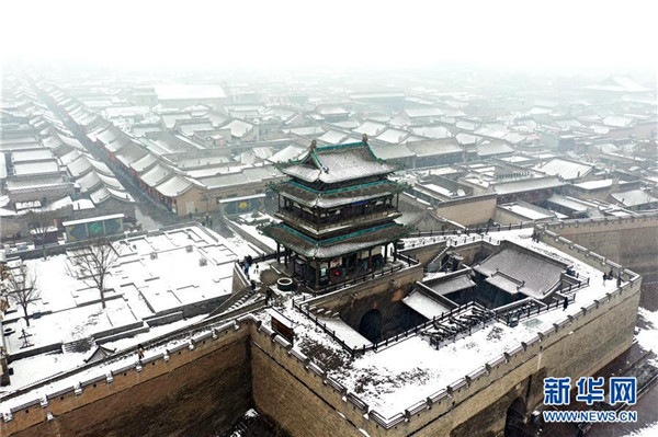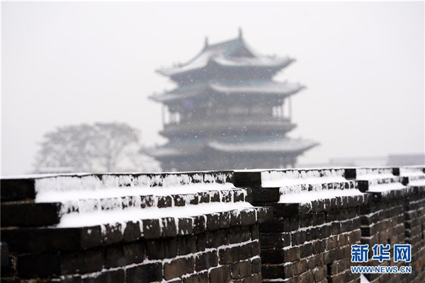 當(dāng)日,山西省平遙縣迎來降雪,雪中的平遙古城銀裝素裹,美景如畫。平遙古城是目前中國保存最完整的古代縣級(jí)城池之一,1997年被列入世界文化遺產(chǎn)名錄。新華社記者詹彥攝