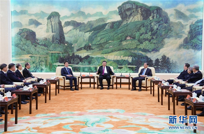 在聽取呂建致辭后,習(xí)近平發(fā)表了重要講話。他強(qiáng)調(diào),2019年是黨和國(guó)家發(fā)展進(jìn)程中極不平凡的一年。面對(duì)復(fù)雜多變的國(guó)際形勢(shì),面對(duì)艱巨繁重的國(guó)內(nèi)改革發(fā)展穩(wěn)定任務(wù),我們大家一起團(tuán)結(jié)奮斗、一起攻堅(jiān)克難,有付出也有收獲,有艱辛也有快樂。一年來,中共中央團(tuán)結(jié)帶領(lǐng)全國(guó)各族人民,沉著應(yīng)對(duì)國(guó)內(nèi)外風(fēng)險(xiǎn)挑戰(zhàn)明顯增多的復(fù)雜局面,堅(jiān)定不移貫徹新發(fā)展理念,著力打好三大攻堅(jiān)戰(zhàn),推動(dòng)經(jīng)濟(jì)建設(shè)、政治建設(shè)、文化建設(shè)、社會(huì)建設(shè)、生態(tài)文明建設(shè)取得新的重大進(jìn)展,為全面建成小康社會(huì)打下了更為堅(jiān)實(shí)的基礎(chǔ)。