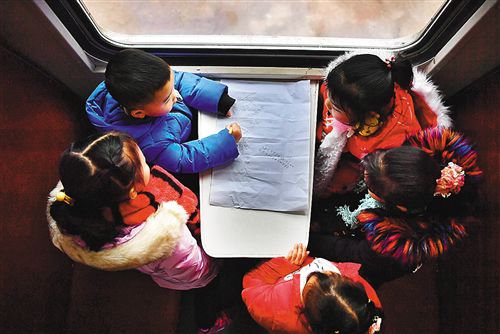 7269次列車(chē)上,幾位小學(xué)生在車(chē)廂里做作業(yè)。綠皮“慢火車(chē)”穿行在武陵山深處,為沿線(xiàn)百姓提供出行服務(wù)的同時(shí),也承擔(dān)著學(xué)生上下學(xué)“校車(chē)”的責(zé)任。